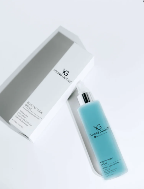 BLUE PEPTIDE SPRAY recharges your skin’s energy and resilience. Methylene blue acts as a cellular spark, optimizing mitochondrial function under daily stressors like UV, pollution, and screens, without staining your skin blue.