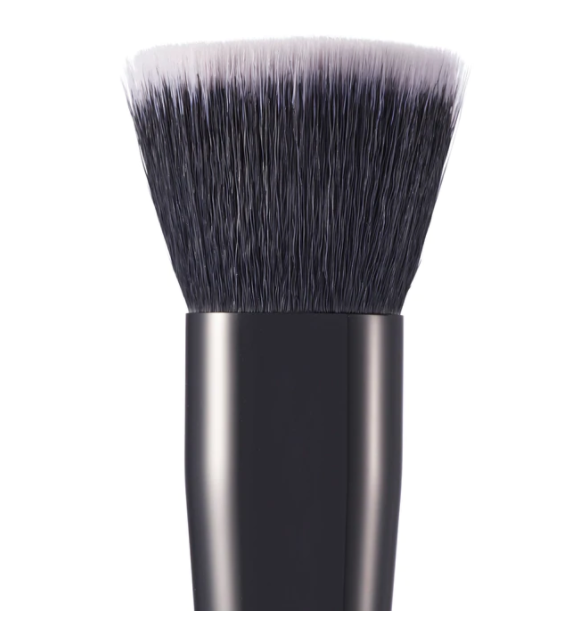 This flat top brush is specifically designed for buffing medium to sheer coverage foundation into the skin. With its dense bristles, it allows for quick and natural application. Simply load the brush with product and distribute evenly by swiping back and forth. Apply in circular motions for a perfectly blended finish. For best results, sanitize and remove product between uses with a brush cleaner, and wash once a week with Pro Cleanse Solid Brush Soap. To maintain longevity, lay flat to dry. With a wide variety to choose from, determine your desired effect - deposit, blend, or diffuse - and choose accordingly. Firm brushes deposit and blend, while soft and fluffy brushes diffuse.