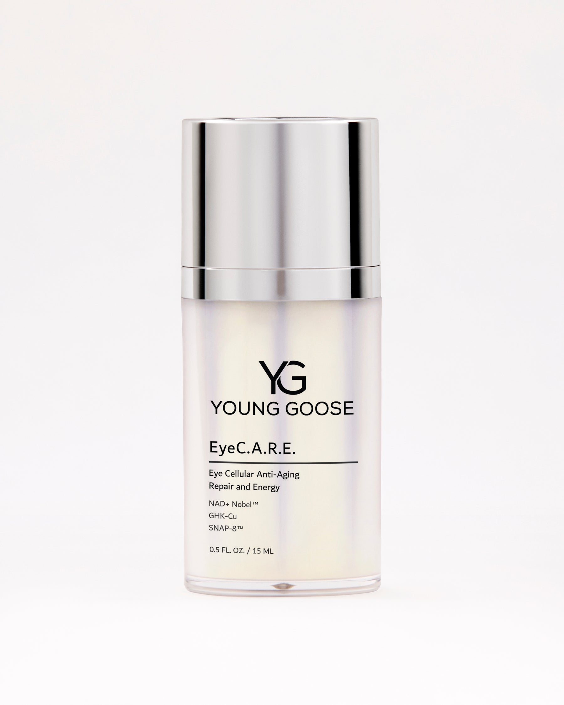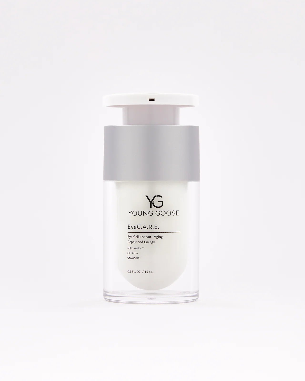 The Young Goose EyeC.A.R.E. NAD+ Boosting Eye Cream is a scientifically advanced treatment designed to rejuvenate the delicate skin around your eyes. Infused with liposomal NAD+ precursors and GHK-Cu peptides, this cream targets the cellular foundations of eye-area aging, enhancing energy production, collagen integrity, and neuromuscular balance. The result is visibly reduced fine lines, puffiness, and dark circles, with improved firmness and luminosity.
